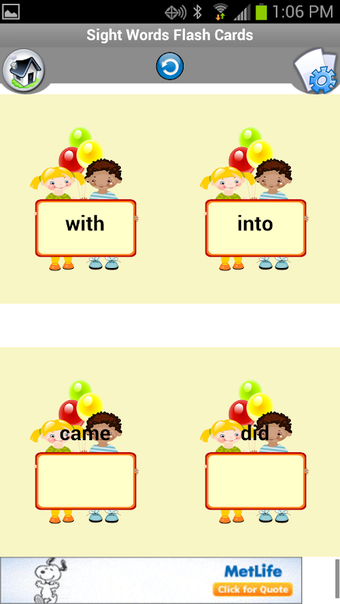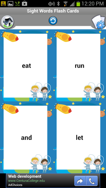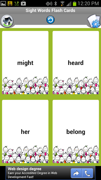 بطاقات الكلمات البصرية للأطفال هي تطبيق أندرويد مصمم لمساعدة الأطفال على تطوير مهارات ما قبل القراءة مثل التعرف على الكلمات الشائعة بالبصر والصوت. هذا التطبيق مناسب للأطفال في مرحلة ما قبل الروضة والروضة والصف الأول والصف الثاني. يأتي مع أربع فئات، واحدة لكل صف، ولكل فئة وضع سؤال مصاحب لاختبار وتعزيز مهارات القراءة.